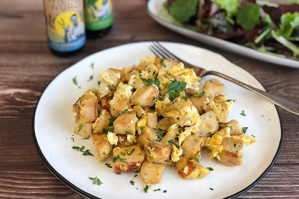 Hier gehts zum RezeptSchnell, herzhaft, österreichisch: Geröstete Knödel mit Ei sind das perfekte „Was hab ich daheim?“-Gericht und schmecken mit frischen Kräutern gleich doppelt gut. Unsere SalatWürze sorgt beim Abschmecken für die feine, würzig-säuerliche Note und macht aus Restln ein richtig rundes Pfannenglück.
